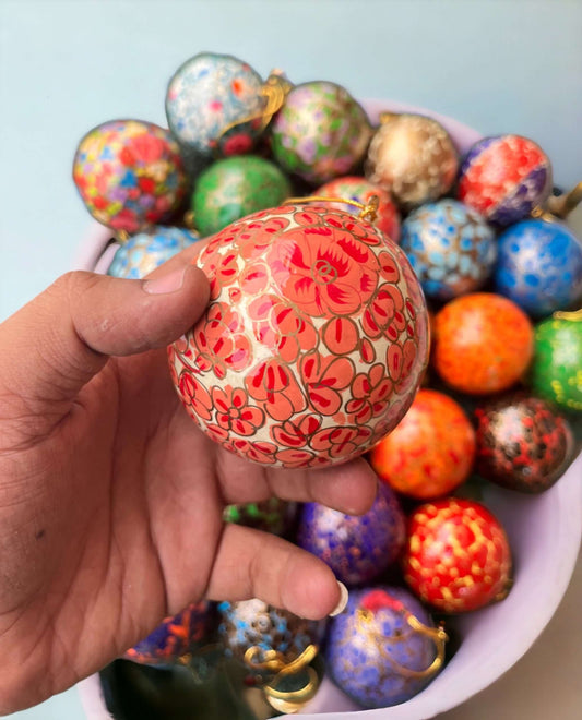 Hand-Painted Papier Mâché Baubles – Assorted (Set of 2)